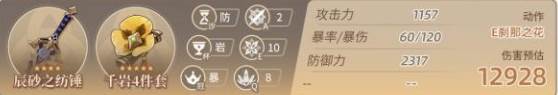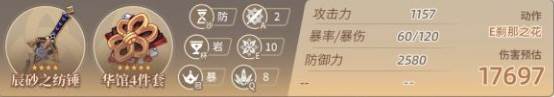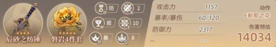 2、四件套效果:角色可以获得问答效果,打中敌人后就能获得一层,累计四层后可以提高防御力和岩元素伤害。