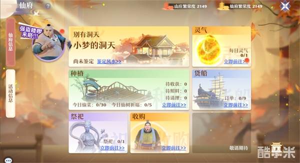 落户神州,独门独户!不用加入山庄也能拥有自己的“独栋大别墅”?「单人仙府」功能上线,造福社恐道友!「批量生产」功能上线、“高价收购”玩法让仙府经营全新升级!全新「仙府好礼」功能登场,前来参观的友人还能拿到你提前备下的贴心礼物!新增物资兑换商店,珍贵道具等你选购,快来打造自己独一无二的专属庭院吧!