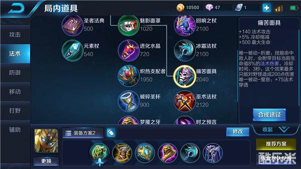 分析:中期,团战频率逐渐增加,考虑到鬼谷子生存能力弱,且技能冷却速度慢,召唤师可以为他装备极寒风暴,弥补缺陷。其次,召唤师还可以购买梦魇之牙,该装备不仅能提升鬼谷子的输出能力,还可以限制敌人的生命回复效果,提升辅助能力。