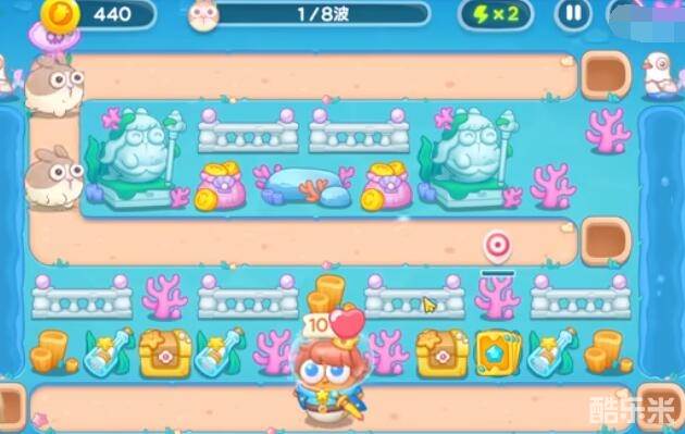 1、海的闺女第15关共有8波怪,开局我们可以建造卡牌在右边部分的位置,第一波来临之前可以先建造几个先对付过去。