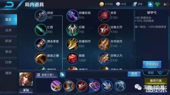 装备2:追击刀锋+攻速鞋+泣血之刃+暗影战斧+破军+破甲弓