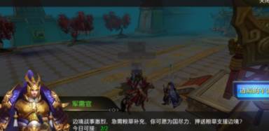红色镖车的经验最高,顺便说一下这个游戏内所有涉及到需要更换颜色或者以颜色区分道具和装备品质的都是这个颜色顺序。当我们已经更换到红色镖车之后就可以再次点击右侧边境的军需任务就会自动前往任务点提交任务。这个任务可以做两次,两次都更换到红色镖车提交任务即可到34级,若因换镖令不够或其它原因未能两次红色镖车,则有可能出现等级跟不上的情况。若换镖令不够可以适当购买几个。