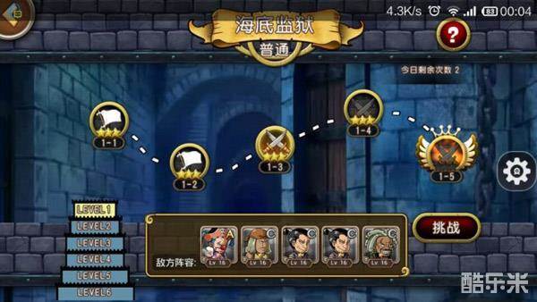 大家发现“海底监狱”的秘密了吗?没错!“海底监狱”每一层的第3关都可以打出BOSS碎片,只要玩家战胜关卡BOSS,即可获得该BOSS的碎片!这一关的BOSS有阿秋、黑带、阿来、强高、小丑、克里克、洛克等,如果“敌方阵容”显示的BOSS并非你想要的碎片,请退出“海底监狱”再进入,系统将为你随机换到其他BOSS!