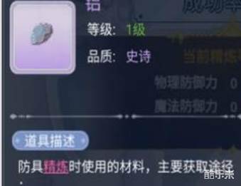 再来看一下魔力之石这个升级石吧,这也是一个紫色的材料,同样属于史诗品质,在初级套装当中主要是用来对饰品进行升级的材料,可以去完成悬赏的任务,完成之后有一定的概率可以得到,当然了了道场闯关也是一种获取方法。
