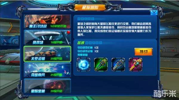 2. 进入后可以进行运输飞船和拦截飞船2种行为,每天可以运输3次、拦截5次
