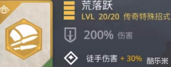 其实荒原落就是荒落跃的别名,使用之后能够提升200%的伤害,如果你的攻击力越高的话就在这个基础上×2。另外还能提升30%的徒手伤害,也就是所谓的平A输出。有了他之后不仅能够让你主动的对敌人造成伤害,还可以提升你的基础伤害数值。