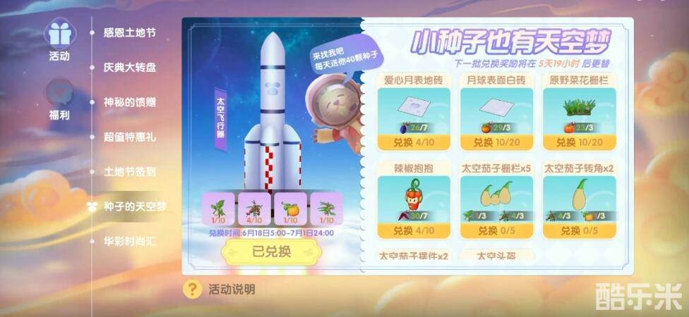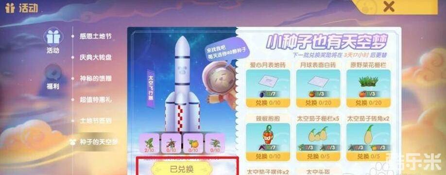 摩尔庄园太空飞行器之最近土地节活动里面的一个道具,在游戏的活动界面兑换 ,有的人没找到位置,摩尔庄园太空飞行器怎么兑换?下面酷乐米小编给大家带来摩尔庄园太空飞行器兑换教程,一起看看吧。
