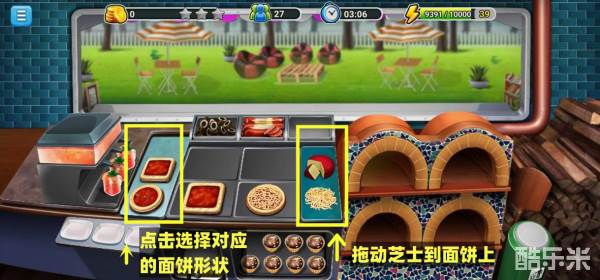 点击面饼,放置对应形状的面饼,注意面饼形状要对应顾客要求哦,不然顾客可不会买账。推荐大家先升级桌面和披萨烤箱,这样我们能够有更多的位置和更快的速度来料理我们的披萨。