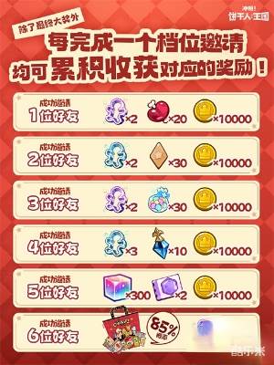 玩家需要邀请好友参与活动,不同的好友数量可以获得不同的奖励;最高邀请六位好友,有很高概率可以获得旺旺大礼包。