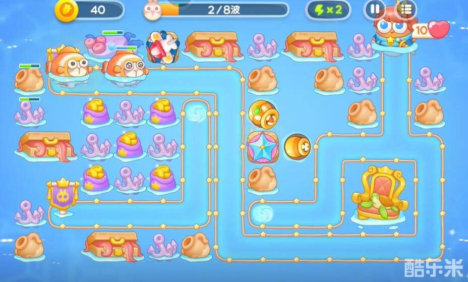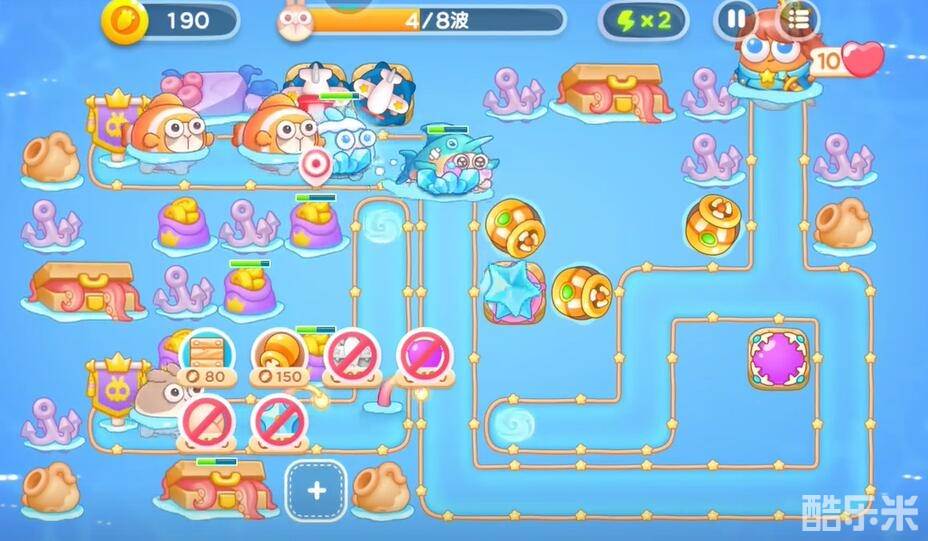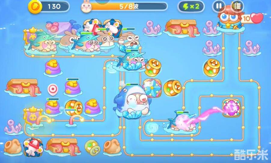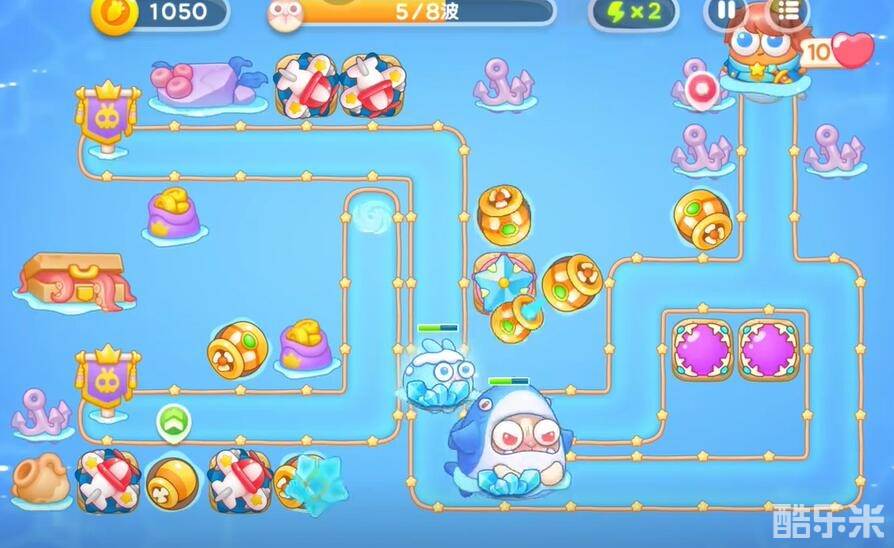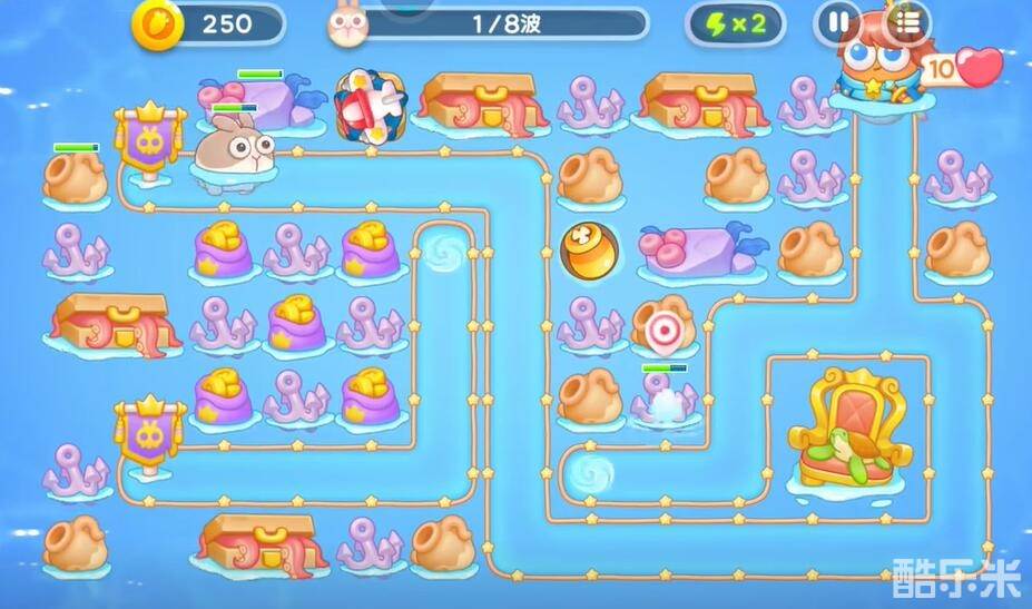 1、升级关卡提供的上方的飞机对兔子进行输出,在中央的右侧建造一个鱼雷清理障碍物。