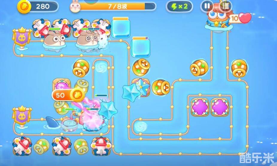 7、哪里输出不足就在哪里建造更多的防御塔,清理掉所有的兔子完成挑战。