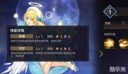 增加魔法防御,使得我方全体伤害全放自己身上,这个是手动操作防御型角色,因为技能不自动,不适合用来刷图,也不适合开局使用。