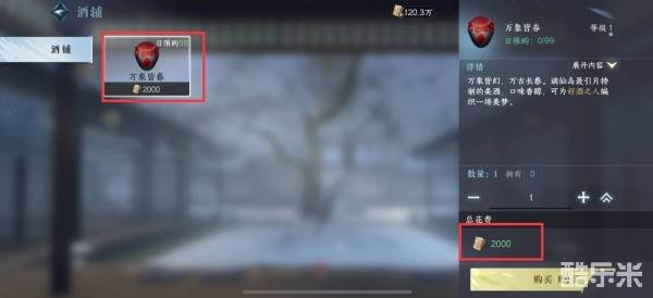 4、选择选项后即可使用2000交子购买万象皆春酒。