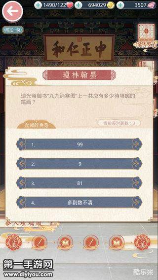 奇迹暖暖道光帝御书九九消寒图上一共应有多少带填廓的笔画