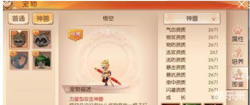 御天是一名物理输出的战士,所以宠物会侧重于物理攻击的。