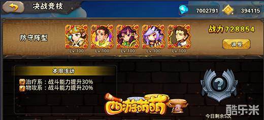 决战竞技是《西游萌萌》中最经典的PVP玩法,团队的较量,段位的排名都是玩法的特点。而决战竞技对玩家战斗能力的最大考验便是其中的“本周活动”。决战竞技每一次更新本周活动都是一次玩家段位排名的大洗牌,因为每一次加强的职业都不尽相同,比如有时候加强了物理系职业,有时候加强了法攻系职业。所以灵活的选择上场英雄,组成更好的阵容参战,才是争夺段位的不二法宝!