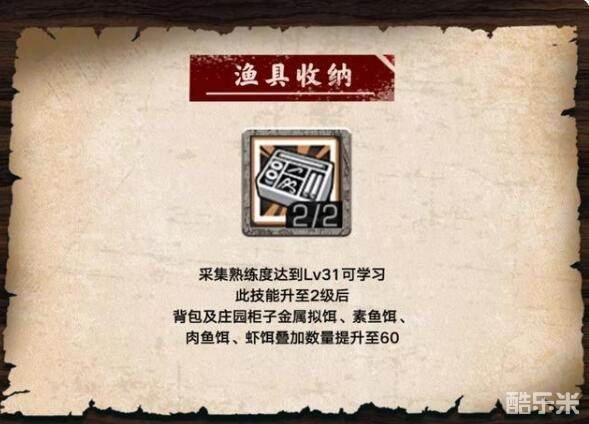 明日之后渔具收纳天赋怎么样?明日之后渔具收纳是最新加入的全新采集天赋,很多人对新天赋不了解,不同的天赋,效果不同,明日之后渔具收纳天赋怎么样?接下来酷乐米小编给大家带来明日之后渔具收纳天赋介绍,一起看看吧。