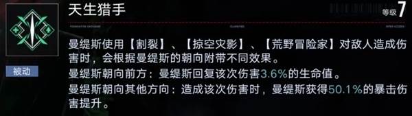 在攻击的时候,曼缇斯往前方向打出回复效果,其余方向为暴伤提升,最高会有10%的提升。