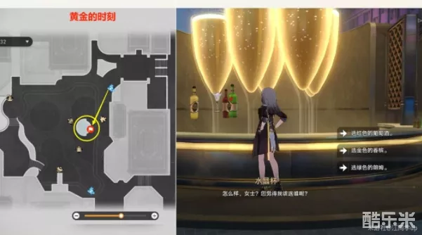 (1)来到地图【黄金的时刻】,3个颜色的酒瓶位置【旁听】,最后会有3个选项,不同的选择,现实第2天3个颜色酒瓶出现的位置会不同,同时获得的成就也会不同,当现实第2天依次找到3个颜色的酒瓶后,就能获得【开杯畅饮】贴纸了,成就是第2天找到第1个颜色的酒瓶后就能获得,属于【与你同行的回忆】