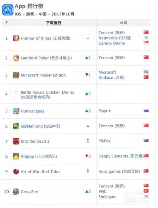 《王者荣耀》依然稳居下载量、收入榜榜首,新游戏《战争艺术:赤潮》表现出色