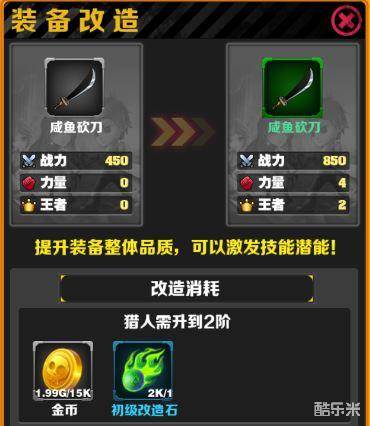 装备每精炼10级,就有一次改造,同时改造还受到当前猎人体格的限制。改造需要消耗金币和不同品质的改造石(通过魔塔以及魔塔商店获得)。