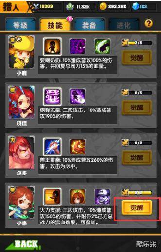 当获得足够的猎人碎片,就可在“技能”处对此猎人进行觉醒。