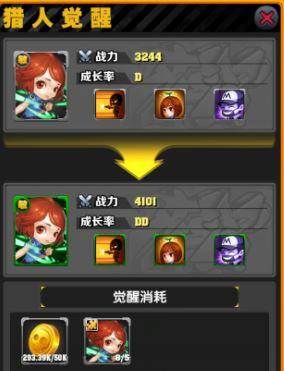 注意,猎人觉醒时不仅要消耗相应数量的猎人碎片,还要消耗一定数量的金币。猎人碎片可通过关卡奖励,召唤,商店以及魔塔任务奖励获得。