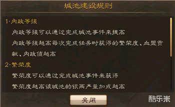 《布武天下》中还设有许多趣味内容增加血盟凝聚力,例如内政系统。玩家在血盟分封的城池中通过发布、完成任务可获得不菲的内政值,内政值不但可以提升内政等级,在盟会中领取更多福利,还能帮助建设血盟城池,获得更多收入加成。