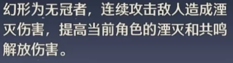 幻形后,当前角色湮灭伤害提升12%,共鸣技能伤害提升12%,持续15秒。
