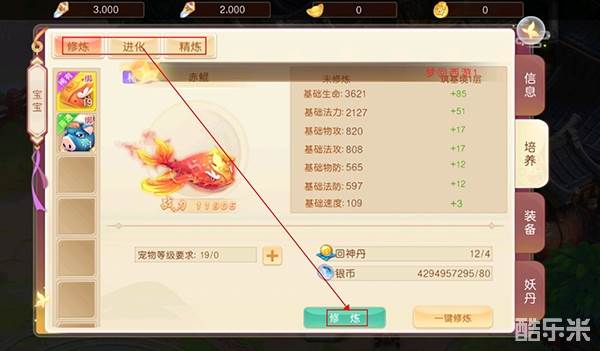 2、玩家还可以对宠物进行培养,通过修炼、进化、精炼来提升宠物属性,增加宠物战斗力。