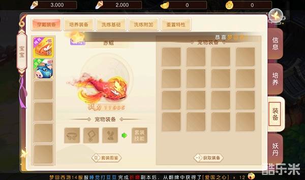 3、玩家还可以选择合适的装备给宠物穿戴,增加宠物属性,提升战力。