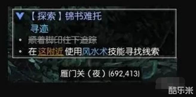 1、先前往雁门关(692,413)处使用风水术寻找相关线索。