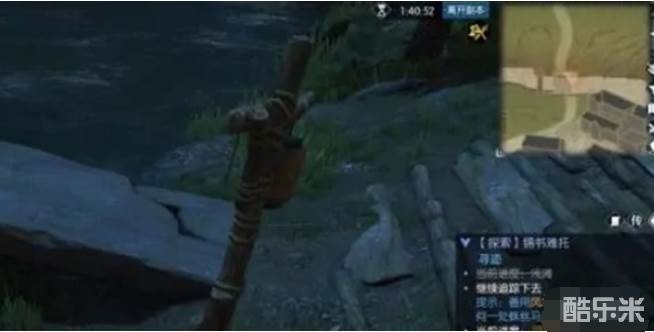 9、等脚印到一个分叉路口后,随意选择一条路将酒交给对应的npc后,到树后面找到线索。