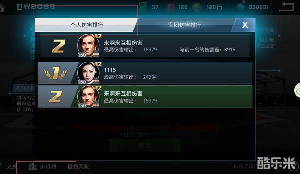 军团排行榜感觉军团成员对boss的总体伤害来排名