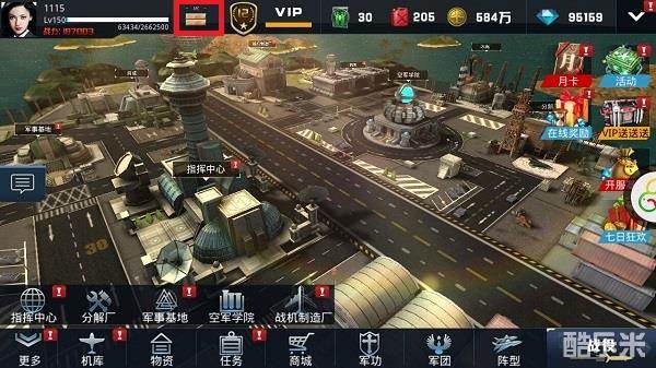 如图点击左上方标红处,进入军衔系统。