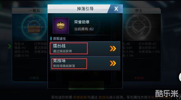 荣誉勋章可以通过参与竞技场和擂台战获得。