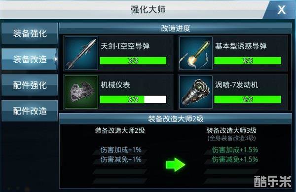 1) 均衡强化,不必追求最高等级的强化,尽量保证每架战机的强化等级差不多