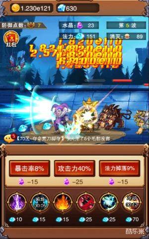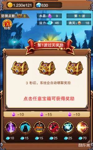 每消灭一只怪物可获得1-5点法力,每通过一关会有三个法力宝箱供你开启,看脸时刻到来。消灭怪物还可获得水晶,水晶用于提升本次挑战中宝宝的属性,譬如增加攻击力、增加暴击率等。注意哦,只是临时增加宝宝能力。