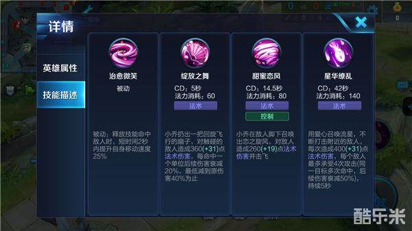 解析:在主动技能命中敌人时,小乔可以在短时间内增加移速,增强了她的灵活性;该技能增益效果的触发有命中敌人的限制条件,但小乔一技能的攻击距离远,而且大招呈范围指向性释放,因此想要触发非常轻松。