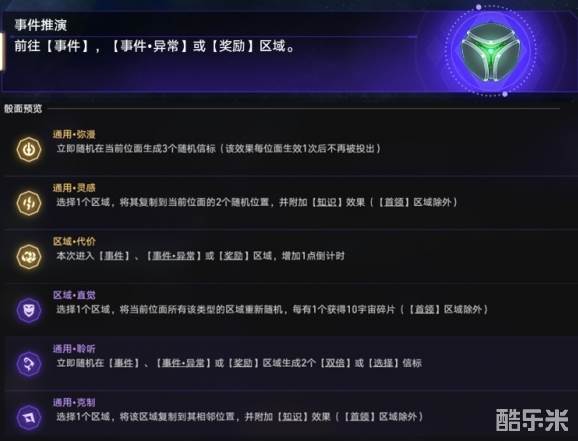 《崩坏星穹铁道》的「模拟宇宙•第五世界」通关玩法分享。更新带来新的祝福、奇物、随机事件和命途回响。自定义骰支持自定义功能。游戏特色在于自定义骰介绍及事件推演骰玩法思路推荐。推荐多走事件获取祝福,加入毁灭神教体验快乐。奇物推演类似扑满推演,通过奇物获取碎片和强化效果。游戏拥有创新的回合制战斗机制,侧重角色技能和定位。在模拟宇宙中体验游戏乐趣,获取高价值奖励。