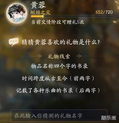 《射雕》当中的黄蓉是其中非常重要的一个角色,不少玩家在《射雕》互动之后都不清楚其喜欢的礼物是什么,酷乐米小编为玩家们找到了黄蓉喜欢的十个礼物。接下里就和酷乐米小编一起来看一看吧。