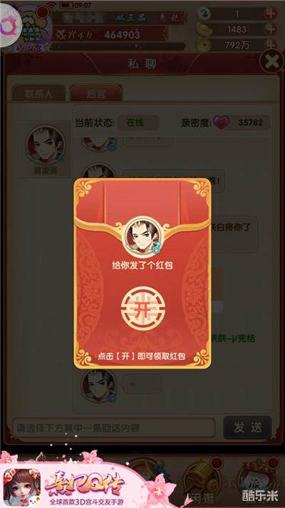 自慕凌辰登基以来,四海昌平、国泰民安,百姓安居乐业,大楚的税收连年增长、国库充裕,连带着皇上的小金库也随之钵满盆盈。这不,体恤嫔妃的皇上在聊天的时候,还时不时给爱妃发个小红包,增加一下相处中的小情趣。所以,还不赶紧点开对话框,向皇上传达爱意吧,谁知道今天将会得到什么惊喜呢!