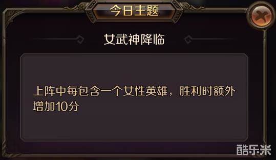 想要获取更多积分,除了英雄的战力要强之外,玩家还要关注七雄争霸每天不同的主题,当出战英雄满足主题条件并赢得战斗时,会有额外的积分奖励哟。