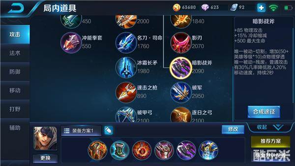六神装推荐:红莲斗篷+抵抗之靴+不死鸟之眼+反伤刺甲+暗影战斧+贤者的庇护