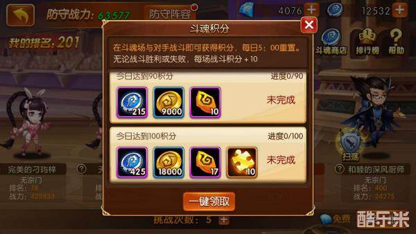 4)每天22:00会按照当前的斗魂场排名,为前1000名发放奖励,包括斗魂币、钻石、金币和培养道具。