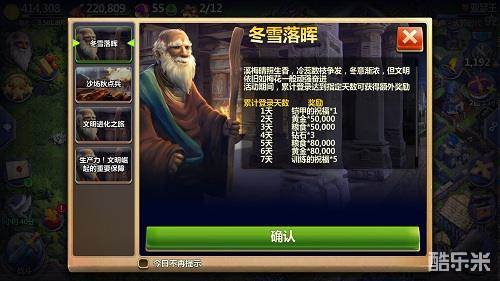 除了打打杀杀的沙场点兵活动之外,在游戏中还将带来冬雪落晖福利。每日登录游戏都可获得登录奖励,闲暇之余可别忘了文明发展。