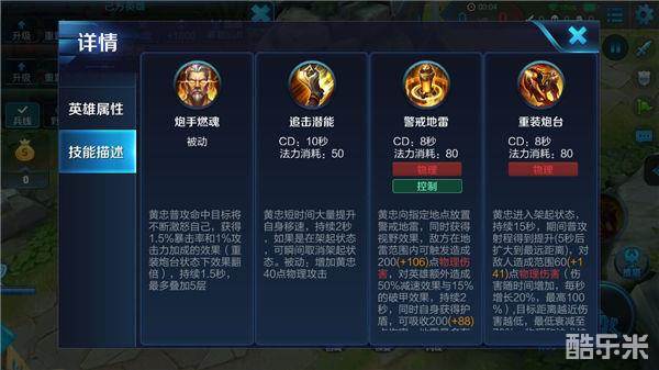 黄忠的普通攻击将提高黄忠的暴击几率以及攻击力,这个技能大大提升了黄忠的伤害能力。