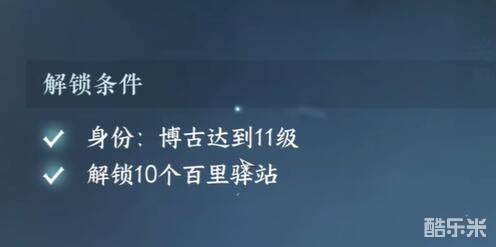 解锁方式:博古等级到达11级,解锁10个百里驿站。