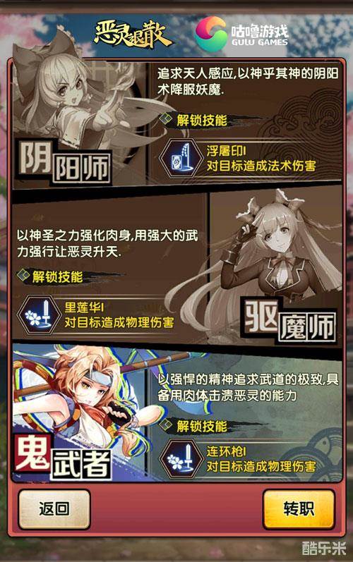 敏捷、耐力以及幸运三职业的加成是一致的,阴阳师主属性智力(提升魔攻),辅助属性力量及灵巧(提升双防);驱魔师主属性力量(提升物攻),辅助属性智力及灵巧(提升双防);鬼武者主属性灵巧(提升物攻),辅助属性力量及智力(提升双防)。