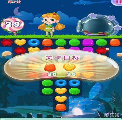 宾果消消乐第7关闯关技巧分享,第7关的任务依然是消除两种颜色的糖果,如下图所示,本关的任务是消除30个橘色糖果和30个小黄星。